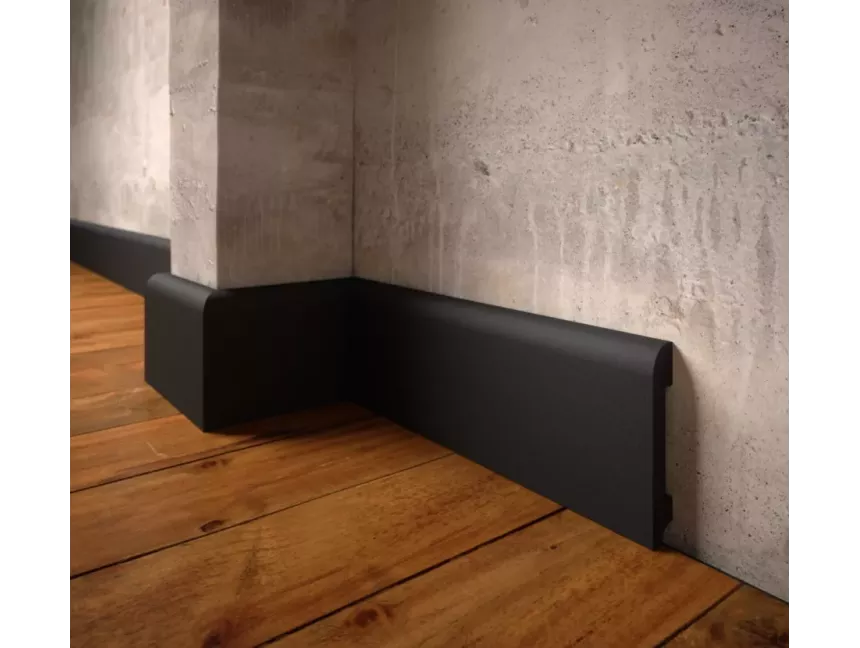 Listwa nie wymaga malowania, ponieważ została zabarwiona w masie na kolor czarny RAL9005. To wygodne rozwiązanie dla osób, które chcą skrócić czas prac wykończeniowych i od razu po montażu uzyskać gotowy efekt przy podłodze.