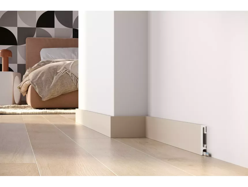 Listwa podłogowa Premium Floor Durofit PF081K kaszmir 8 cm to eleganckie i wszechstronne rozwiązanie do wykańczania podłóg, które doskonale pasuje do wnętrz o zróżnicowanym stylu – od klasycznych po nowoczesne.