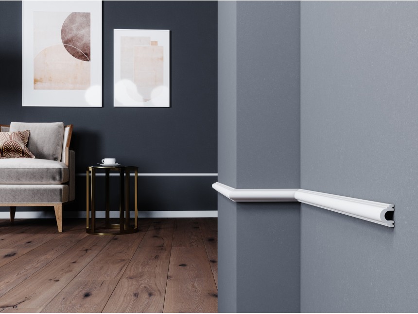 Biała listwa ścienna Intenpro line B5302 o zaokrąglonym designie to model stworzony z trwałych materiałów, co umożliwia jego wykorzystanie w każdym pomieszczeniu. Jest ona odporna nie tylko na uderzenia, ale również wilgoć. Ponadto dekoracyjna listwa ścienna line B5302 Intenpro jest gotowa do montażu, więc w łatwy sposób stanie się profilem lub subtelną częścią sztukateryjnej kompozycji.